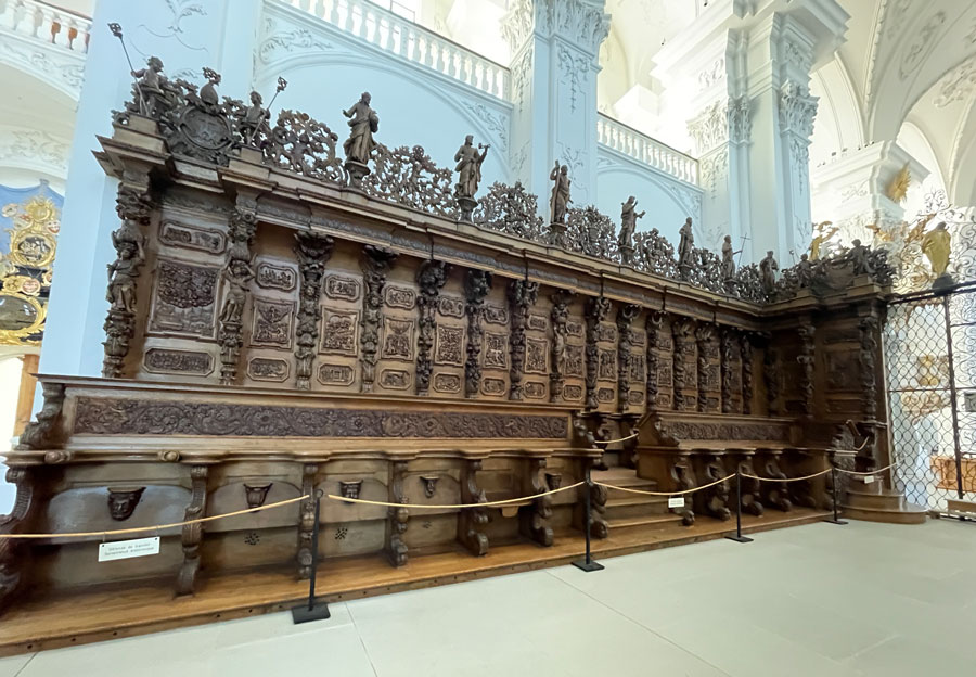 Die Kirche vereint barocke und zisterziensische Baukunst und wurde 1711-1717 unter Abt Malachius Glutz erbaut. An den Wänden und Säulen gibt es nur Stuckaturen. Im Chorgestühl beteten die Mönche 7mal im Tag und einmal zur Messe. Die Orgel um 1716-21 mit 40 Registern und über 2500 Pfeifen und 3 Manualen gehört heute zu den grössten noch weitgehend erhaltenen Barockorgeln Europas. Der Prunkraum der Barockanlage ist der Festsaal mit nobler Stuckausstattung, hohen Fensternischen, Cheminées, Stühlen und Polsterbänken als Zeitzeugen aus dem 18. Jahrhundert. Der barocke Festsaal war einst Schauplatz hoher Klosterfeste und Benediktionsspielen. Die Bibliothek enthielt 6000 einheitlich gebundene, goldgeprägte Buchbände.
